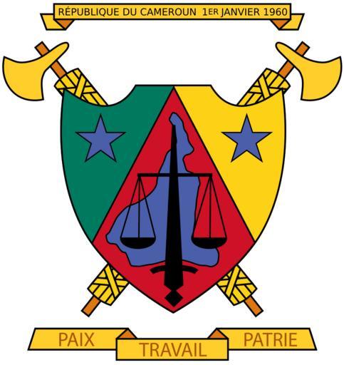 | Keywords: Coat of arms of Cameroon old.svg in Guide to the Flags of the World by Mauro Talocci revised and updated by Whitney Smith ISBN 0-688-01141-1 p 144 NOTE According to website http //web archive org/web/20040606140801/http //www christian-siemer de/wappen/afrika/kamerun htm there were a number of variations in the wording on the upper scroll over the years and the wording seen here was used in 1960-1961 Coat_of_arms_of_Cameroon svg 2010 SVG file AnonMoos SVG file based on image by User Connormah Insignia PD-Cameroon Historical coats of arms of Cameroon |
