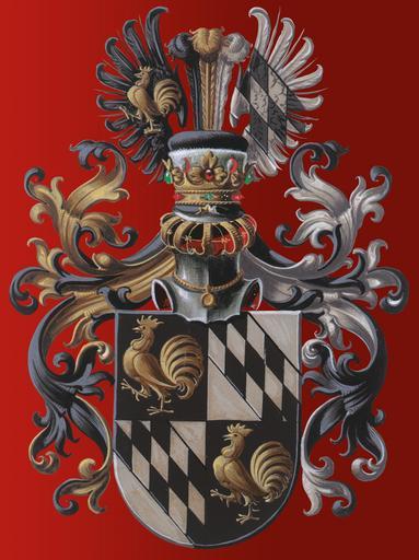 Keywords: coat of arms european tradition hereditary characters person family group of people noble family knighthood knight hahn argyle pattern wing feather helm knight helmet heraldry gems nobleman old antique gold silver black white armor metal visor middle ages on red palatial stylized gold medallion chain |