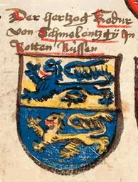 Keywords: Coat of Arms of Smolensk (1464a).jpg ru Ге б «ге цога Федо а Смоленского в Че воной Руси» «der hertzog Fedur von Schmolentzgi in roten Rüsen» гостя собо а в составе делегации во главе с киевским мит ополитом Г иго ием Цамблаком Рисунок из укописи «Х оники Констанцского собо а» Уль иха Рихенталя т н Констанцская укопись х оники 1464 г г Констанц Это вто ая едакция «Х оники » после т н Олендо фского кодекса по http //v2 manuscriptorium com/apps/main/en/index php request show_record_num param 0 mode client факсимиле опубликованному на сайте а одной библиотеки Чешской еспублики П ага Лист 248v 505/565 http //www heraldicum ru/russia/subjects/towns/smolensk htm Ге альдикум 1464 Creator Ulrich von Richental PD-Old-100 100px thumb Symbols of Smolensk Isolated coats of arms in the Chronicle of the Council of Constance Lions in heraldry