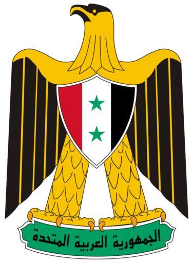 | Keywords: Coat of arms of United Arab Republic (Syria 1958-61, Egypt 1958-1971).svg Coat of arms of the United Arab Republic Egypt and Syria 1958-1961 Egypt 1958-1971 -- standard pan-Arab Eagle of Saladin with shield of the tricolor of national flag holding a scroll with the words al-Jumhuriya al-`Arabiya al-Muttaħida symbol found in The International Flag Book in Color by Christian Fogd Pedersen 1971 etc This image based on Image COA of Iraq 1965 svg Original by User Tonyjeff based on national symbol with the help of User Omar86 User Kafka1 and User AnonMoos Modified by User R-41 for 1965 Iraqi COA further modified by User AnonMoos Insignia v United Arab Republic Historical coats of arms of Egypt SVG coats of arms of Egypt Historical coats of arms of Syria Eagle of Saladin 2 five rays vert in heraldry 1958 in Egypt Egyptian United Arab Republic referendum 1958 |