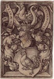 Keywords: Coat of Arms with a Cock2.jpg Beham Hans Sebald 1500-1550 Coat of Arms with a Cock 1543 P 267 B 256 Private collection Scan by Nick Michael 2006 Reproduction of 2D artwork in public domain Creator Sebald Beham Coats of arms of Germany to be classified Engravings of animals cocks in heraldry Sebald Beham Cocks in crest |