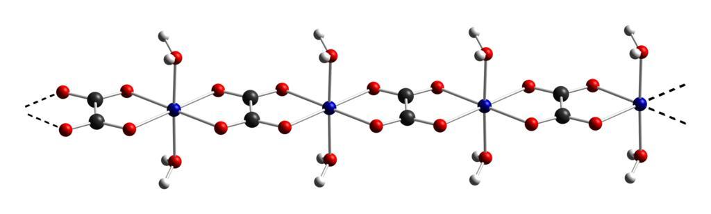 | Keywords: Cobalt(II)-oxalate-dihydrate-from-xtal-2005-CM-3D-balls.png Ball-and-stick diagram of part of the crystal structure of cobalt II oxalate dihydrate Co ox <sub>2</sub> OH<sub>2</sub> <sub>2</sub><sub> ˆž</sub> Colour code Cobalt Co blue Carbon C black Oxygen O red Hydrogen H white Crystal structure from http //dx doi org/10 1107/S0108270104030409 Acta Cryst 2005 C61 m58-m60 Image generated in http //www crystalmaker com/ CrystalMaker 8 3 Own 2010-09-19 Ben Mills Benjah-bmm27 Images by Ben Mills Ball-and-stick models Cobalt II oxalate |