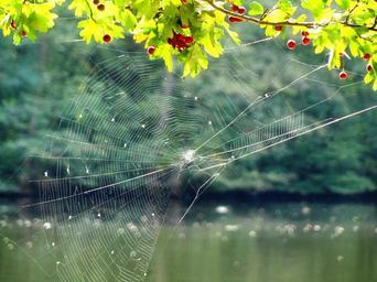 Keywords: cobweb network tender lake nature mood autumn sparkle sunlight lichtspiel