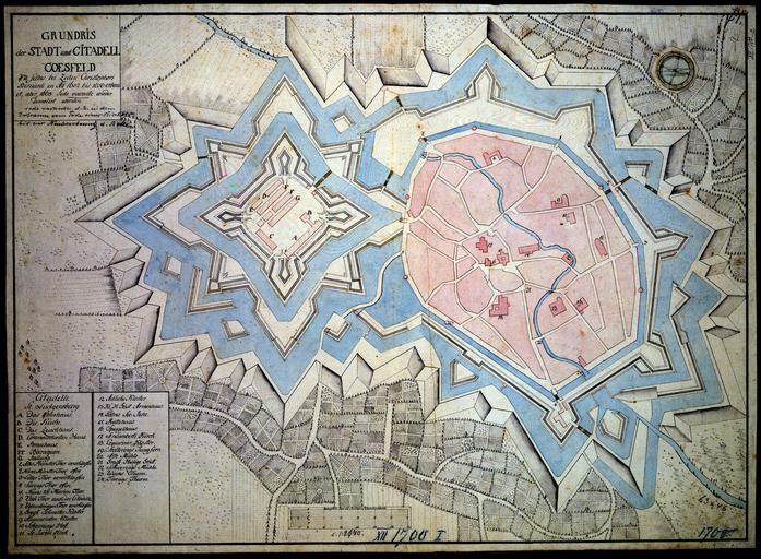| Keywords: Coesfeld mit Zitadelle Ludgerusburg.jpg Coesfeld and the citadel Ludgerusburg in Northrhine-Westphalia Germany The citadel was build and destroyed in the 17th Century Coesfeld und die ab 1654 vor ihren Toren errichtete Zitadelle Ludgerusburg Fürstbischof Christoph Bernhard von Galen erwählte Coesfeld zu seiner Residenzstadt da er mit Münster im Streit lag Peter Pictorius der Ältere wirkte bei den Arbeiten maßgeblich mit Nach dem Tod des zweiten Nachfolgers von Galens im Amt des Fürstbischofs noch während der Sedisvakanz ließ das Domkapitel Münster die Anlage 1688 schleifen Nur wenige à berreste darunter die Ruine des Torhauses und ein Tonnengewölbe sowie ein Ravelin haben sich bis in unsere Zeit erhalten Die Karte befindet sich im preußischen Kulturbesitz vgl http //www westfaelische-geschichte de/kar774 Internet-Portal žWestfälische Geschichte des Landschaftsverbandes Westfalen-Lippe http //www westfaelische-geschichte de/kar774 Internet-Portal žWestfälische Geschichte des Landschaftsverbandes Westfalen-Lippe author century 17 PD-old History of Coesfeld Ludgerusburg Coesfeld |