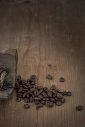 Keywords: coffee coffee beans natural product roasted brown dark caffeine wood close text freedom negative space