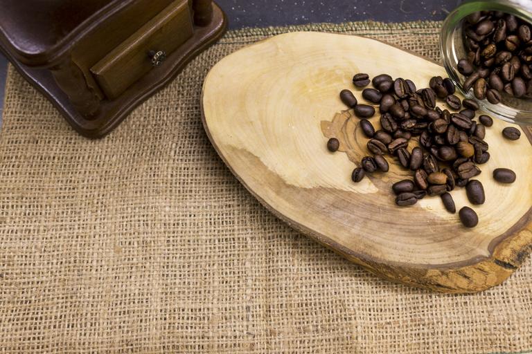 Keywords: coffee seed coffee seeds brown cappuccino espresso coffee grinders chopping board wood tree beverage food photo light nutrition food kitchen design decoration cup coffee cup mesh cloth wire mesh