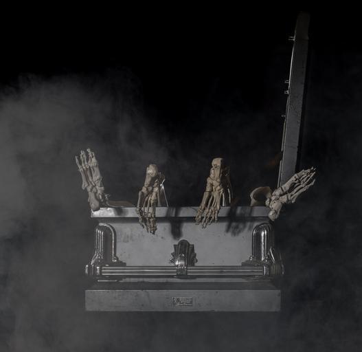 Keywords: coffin skeletal foot six humor