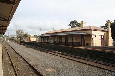 Keywords: 38 21S 143 35E Colac railway station is located on the Port Fairy line in Victoria, Australia. It serves the town of Colac. Opened 27 July 1877. Attribution: Wongm
