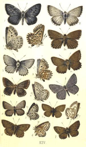 Keywords: Colemans British Butterflies Plate XIV.png Plate XIV from W S Coleman's British Butterflies 1860 1 Large Blue 2 Chalk-hill Blue 2 a female 3 Adonis Blue 3 a female 4 Common Blue 4 a female 5 Silver-studded Blue 5 a female 6 Brown Argus 7 Artaxerxes Butterfly modern Northern Brown Argus 2010-10-11 Keith Edkins W S Coleman's British Butterflies PD-old Coleman's British Butterflies Files from Project Gutenberg Phengaris arion Polyommatus coridon Polyommatus bellargus Polyommatus icarus Plebejus argus Aricia agestis Aricia artaxerxes |