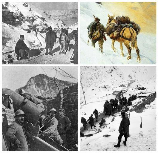 | Keywords: Collage guerra Bianca.png Guerra Bianca en White War 1915 “1918 photo collage Gebirgskrieg Fotocollage 2015-10-15 File 1917_315_Artiglieria jpg File Barake_avstroogrske_vojske_na_tirolski_fronti jpg File Alpino 26Mulo-Achille_Beltrame jpg File Ă–sterreicher_beim_Fassen_des_Morgenessens_-_CH-BAR_-_3237047 tif own other versions 100px thumb left B W version it image Custom license marker 2015 10 15 PD-Italy Italia 1 gennaio 1996 PD-Slovenia cc-by-sa-3 0-ch DE Schweizerisches Bundesarchiv CH-BAR E27 1000/721 14094 3050 / CC-BY-SA 3 0/CH<br/> EN Swiss Federal Archives CH-SFA E27 1000/721 14094 3050 / CC-BY-SA 3 0/CH<br/> FR Archives fĂ©dĂ©rales suisses CH-AFS E27 1000/721 14094 3050 / CC-BY-SA 3 0/CH<br/> IT Archivio federale svizzero CH-AFS E27 1000/721 14094 3050 / CC-BY-SA 3 0/CH Italian Front theatre of World War I World War I forces of Italy Uploaded with UploadWizard World War I forces of Austria-Hungary |