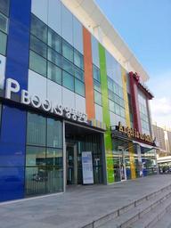 Keywords: collar curtain wall blue orange green windows curtain reflections