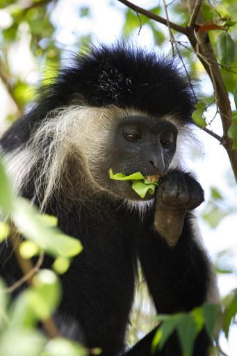 Keywords: colobus monkey coat monkey africa primates black and white intelligent mammal nature primate animal