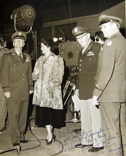 | Keywords: colonel orie w. coyle special collection photo coloneloriewcoylespecialcollectionphoto â 1950 â1950 ktla-tv ktlatv television camera televisioncamera tv camera tvcamera ktla Catalog #: 09_00615 Title: Colonel Orie W. Coyle Special Collection Photo Additional Information: Three men in military uniform and one woman standing in front of television cameras, Col. Coyle served with the Marines in WWI and worked for Douglas prior to his service in WWII, Tags: Colonel Orie W. Coyle Special Collection Photo, 1950 Repository: San Diego Air and Space Museum Archive Catalog #: 09_00615 Title: Colonel Orie W. Coyle Special Collection Photo Additional Information: Three men in military uniform and one woman standing in front of television cameras, Col. Coyle served with the Marines in WWI and worked for Douglas prior to his service in WWII, Tags: Colonel Orie W. Coyle Special Collection Photo, 1950 Repository: San Diego Air and Space Museum Archive |