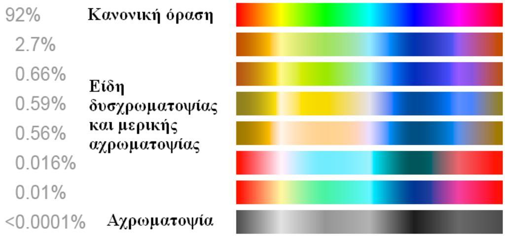 Keywords: Color blindness el.png en A comparison of the visible color spectrum in common types of color blindness el ερικά αραδείγματα φυσιολογικής και μη φυσιολογικής όρασης με τα αντίστοιχα οσοστά στον ληθυσμό File Color blindness png Transferred from http //el wikipedia org el wikipedia; transferred to Commons by User MARKELLOS using http //tools wikimedia de/~magnus/commonshelper php CommonsHelper 2009-11-29 Nanobot translation Περίεργος Released under the GNU Free Documentation License File Color blindness png original original upload log page el wikipedia CE 8C CF 81 CE B1 CF 83 CE B7_ CF 87 CF 81 CF 8E CE BC CE B1 PNG 2009-11-29 13 22 Περίεργος 682319 24986 bytes <nowiki> Περιγραφή ερική μετάφραση του αρχείου File Color blindness png Πηγή Wikicommons Ημερομηνία 29-11-2009 Δημιουργός Άδεια χρήσης GFDL </nowiki> Color blindness |