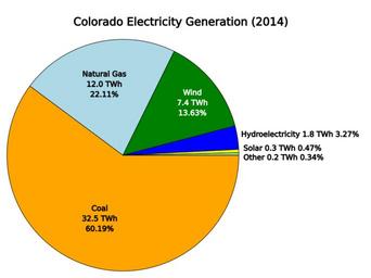 | Keywords: Colorado Electricity Sources.svg translate yes en Sources of electricity generated in Colorado 2014 US EIA Data from the US Energy Information Administration website http //www eia gov/electricity/state/colorado/index cfm 2016-07-26 own Delphi234 other versions cc-zero Electric power generation Energy in Colorado |
