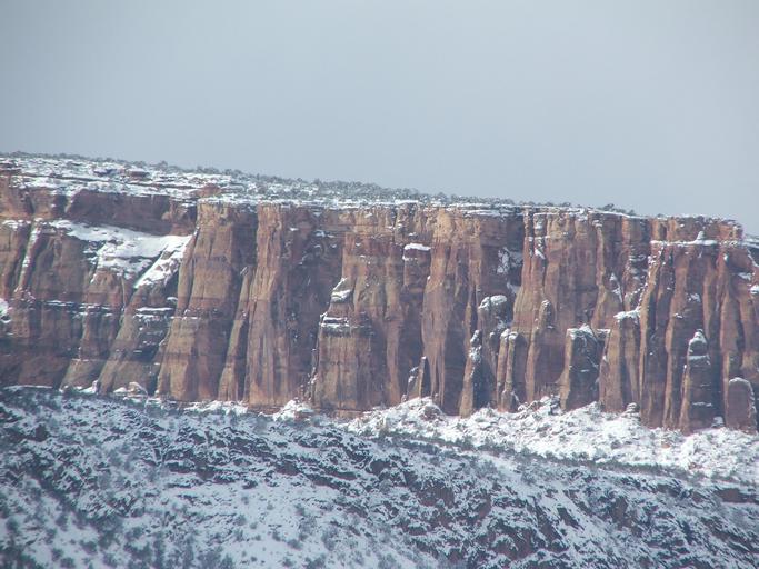 Keywords: colorado national monument rocks mountains cliff rock wall winter snow