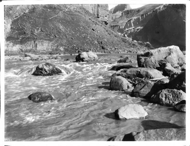 | Keywords: Colorado River, from the Hance Trail, Grand Canyon, looking east, 1900-1930 (CHS-3061).jpg en <br> Colorado River from the Hance Trail Grand Canyon looking east 1900-1930 Photograph of the Colorado River from the Hance Trail or Hanse Trail Grand Canyon looking east 1900-1930 Water flows rapidly in and around the rocks in the river and jutting out from the shore A small cluster of sticks and other vegetable matter washed up by the river have caught among three or four rocks in the foreground The opposite bank rises steeply in a rocky slope Near vertical rocky canyon walls are in the background A rocky mountain rises in the distance Call number CHS-3061 Photographer James George Wharton Filename CHS-3061 Coverage date 1900/1930 Part of collection California Historical Society Collection 1860-1960 Format glass plate negatives Type images Part of subcollection Title Insurance and Trust and C C Pierce Photography Collection 1860-1960 Repository name USC Libraries Special Collections Accession number 3061 Microfiche number 1-91-79; 1-91-99 Archival file chs_Volume93/CHS-3061 tiff Repository address Doheny Memorial Library Los Angeles CA 90089-0189 Geographic subject country USA Format aacr2 2 photographs glass photonegative photoprint b w ; 17 x 22 cm Rights Digitally reproduced by the USC Digital Library; From the California Historical Society Collection at the University of Southern California Subject adlf canyons; rivers Project USC Repository email specol usc edu Contributing entity California Historical Society Date created 1900/1930 Publisher of the digital version University of Southern California Libraries Format aat photographic prints; photographs Geographic subject state Arizona Legacy record ID chs-m15710; USC-1-1-1-14261 Geographic subject canyons Grand Canyon Access conditions Send requests to address or e-mail given Phone 213 821-2366; fax 213 740-2343 Subject file heading Natural features -- Parks -- Grand Canyon -- Colorado River -- Hance Trail Subject lcsh Parks; Canyons; Rivers 1900/1930 date created George Wharton James 1858 1923 http //digitallibrary usc edu/cdm/ref/collection/p15799coll65/id/14475 PD-old-70-1923 Colorado River in the Grand Canyon Rapids on the Colorado River Black and white photographs of Arizona Images from USC Digital Library uploaded by Fæ Photographs by George Wharton James California Historical Society Collection 1860-1960 Glass plate negatives |