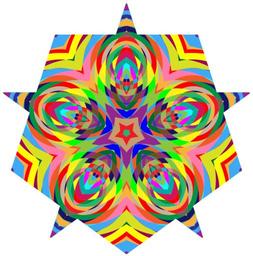 Keywords: colorful chromatic psychedelic prismatic rainbow geometric mandala star abstract art