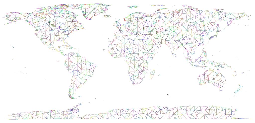 Keywords: colorful prismatic chromatic rainbow triangles triangular low poly polygon abstract geometric art world earth planet globe map geography cartography continents wireframe strokes