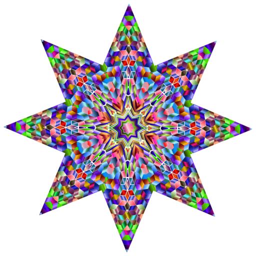 Keywords: colorful prismatic chromatic rainbow star cubes segmented abstract geometric art