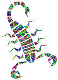 Keywords: colorful prismatic chromatic rainbow triangles triangular low poly polygon abstract geometric art tribal scorpion arachnid insect poisonous animal predator
