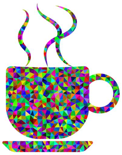 Keywords: colorful prismatic chromatic rainbow triangles triangular low poly polygon abstract geometric art coffee cup silhouette steam hot beverage drink refreshment