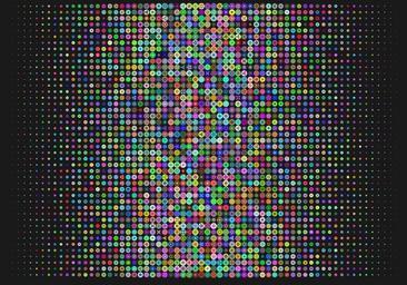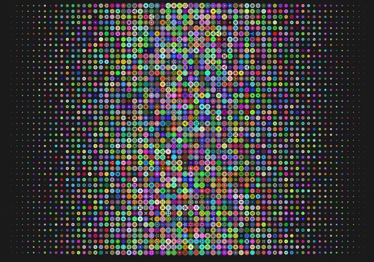 | Keywords: geometry circles color colour colors colours julia code texture indoor abstract While testing a few lines of code that produce spiky wheel shapes, I started chasing the limits of how many could be produced. I wonder if any are duplicates? Each one can encode six colours and 3 different selections of between 3 and 16 spokes, so there are about two billion different possibilities. While testing a few lines of code that produce spiky wheel shapes, I started chasing the limits of how many could be produced. I wonder if any are duplicates? Each one can encode six colours and 3 different selections of between 3 and 16 spokes, so there are about two billion different possibilities. |