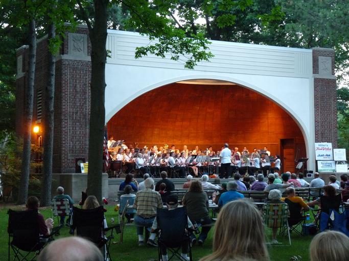 Keywords: Columbia Park Bandshell.jpg 8000842 en The bandshell in Columbia Park in Marshfield Wisconsin is an art deco structure built in 1931 as a make-work project and to provide free summer entertainment To this day the Marshfield Civic Band provides free concerts there on Wednesday evenings in summer one of which is pictured The structure is listed on the National Register of Historic Places own Jeff the quiet 2012-06-27 Bandshells in the United States Art Deco architecture in Wisconsin Marshfield Wisconsin Buildings and structures on the National Register of Historic Places in Wisconsin National Register of Historic Places in Wood County Wisconsin Cc-zero |