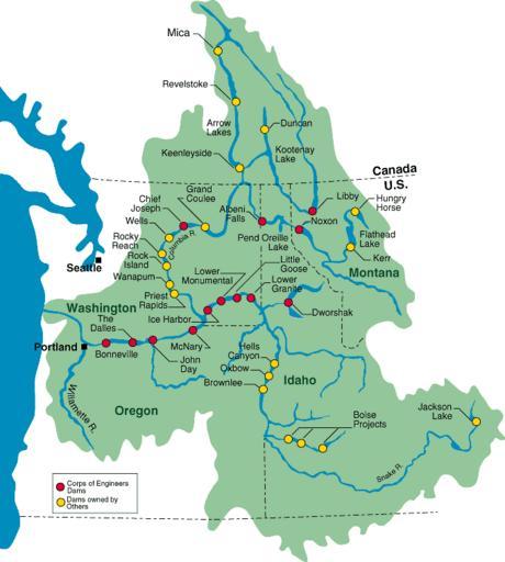 | Keywords: Columbia.png Maps of dams drainage and estuaries along the Columbia River in North America USA Canada Original caption The Columbia River carved the Interior Columbia River Basin from the landscape of seven Western states and two Canadian provinces The river itself flows from its headwaters in British Columbia Canada through only two states forming part of the Washington-Oregon border the vast Interior Columbia River Basin is defined by the area drained by the river and its many tributaries This 58-million-hectare area about the size of France extends roughly from the crest of the Cascade Mountains of Oregon and Washington east through Idaho to the Continental Divide in the Rocky Mountains of Montana and Wyoming and from the headwaters of the Columbia River in Canada to the high desert of northern Nevada and northwestern Utah Primary Source U S Army Corps of Engineers North Pacific Region http //www nwd-wc usace army mil/report/colmap htm Secondary source http //en wikipedia org/wiki/Image Columbia png U S Government PD-USGov Columbia River Basin Maps of rivers of Canada Columbia Maps of rivers of the Western United States Columbia Uploads by Mattes from external sources de Bild Columbia png fi Kuva Columbia png |