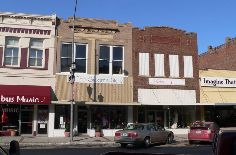 Keywords: Columbus, Nebraska 2510-2512 13th St.JPG Columbus Nebraska The block is part of the Columbus Commercial Historic District which is listed in the National Register of Historic Places The building partly visible at right with the Imagine That sign is the former LaBook Ladies Shop at 2508 13th St built ca 1923 The dark brick building beside it with the four white upper windows is the J W Weaver building at 2510 built in 1919 The building beside it The Groom's Store is the former Reece Shoe Co at 2512 built ca 1913 The leftmost building with Columbus Music on the awning is the Hansen Building at 2514 built ca 1914 All four buildings are contributing properties in the Historic District own Ammodramus 2010-02-12 Pictures by Ammodramus Taken with Panasonic Lumix DMC-FZ20 Columbus Commercial Historic District Built in Nebraska in 1913 Built in Nebraska in 1914 Built in Nebraska in 1919 Built in Nebraska in 1923 Shops in Nebraska Brick buildings in Nebraska |
