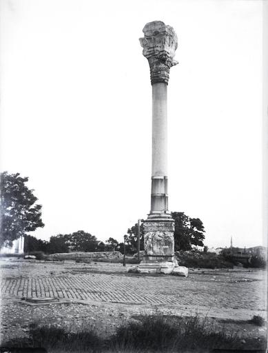 | Keywords: kıztaşı markianos sütunu markianossütunu çırçır yangını çırçıryangını sütun bizans fatih i̇stanbul istanbul column of marcian columnofmarcian çırçır fire çırçırfire column byzantine constantinople outdoor architecture monument monochrome Bizans İmparatoru Markianos (450-457) adına Vali Tatiatus tarafından yaptırılan Markianos Sütunu, kaidesindeki Zafer Tanrıçası kabartmaları nedeniyle 1453’ten sonra Kıztaşı olarak anılmaya başlandı. Zamanla önemini yitiren ve uzun bir süre bir bahçe içinde kalan sütunun çevresi, 1908’deki Çırçır Yangını’ndan sonra açıldı. Bulunduğu semte adını veren Kıztaşı, orijinal hâlini kısmen koruyarak günümüze ulaşmıştır.  Kıztaşı (Markianos Sütunu), Fatih, İstanbul  Engin Özendes’in SALT Araştırma korumasına devrettiği nadir cam negatiflerden (tarihi bilinmiyor) Bizans İmparatoru Markianos (450-457) adına Vali Tatiatus tarafından yaptırılan Markianos Sütunu, kaidesindeki Zafer Tanrıçası kabartmaları nedeniyle 1453’ten sonra Kıztaşı olarak anılmaya başlandı. Zamanla önemini yitiren ve uzun bir süre bir bahçe içinde kalan sütunun çevresi, 1908’deki Çırçır Yangını’ndan sonra açıldı. Bulunduğu semte adını veren Kıztaşı, orijinal hâlini kısmen koruyarak günümüze ulaşmıştır.  Kıztaşı (Markianos Sütunu), Fatih, İstanbul  Engin Özendes’in SALT Araştırma korumasına devrettiği nadir cam negatiflerden (tarihi bilinmiyor)  |