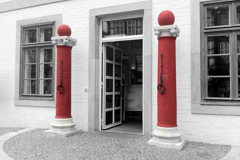 Keywords: columnar shackles chains pillory non-free chained caught red historically lower saxony celle hall entrance