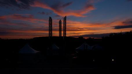 Keywords: columnar steles glass columns art artwork modern art sunset afterglow sky clouds uni irchel zurich switzerland university of irchel