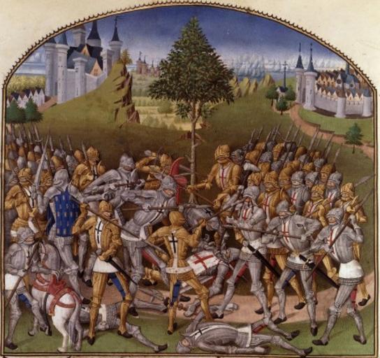 | Keywords: Combat des Trente (1351).png fr cote cliché RC-C-02440 légende Combat des Trente 1351 Lettre aux armes d'Hélène de Laval département Manuscrits occidentaux cote du document FRANCAIS 8266 collection ou fonds Jean de Derval ; maréchal d'Estrées période du document Moyen âge date du document ou du recueil 1480-1482 partie de Compilation des chroniques et histoires de Bretagne - Bretagne folio pagination Folio 240v auteur s Le Baud Pierre -1505 Auteur catégorie Manuscrits à peinture matériau x Parchemin BNF RC-C-02440 Le Baud Pierre -1505 1480-1482 Combat of the Thirty Compillation des cronicques et ystoires des Bretons - BNF Fr8266 PD-old-100 |