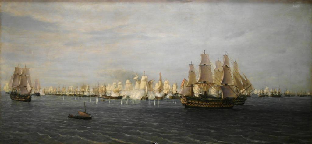 Keywords: CombateDeTrafalgarVistaGeneralDelCombate.jpg El lienzo representa el momento en que la escuadra inglesa avanza formada en dos grupos cerrados contra la flota francoespañola durante la batalla de Trafalgar que quedó dividida en dos partes y perdió la mayoría de sus buques 1870 oil canvas Size cm Institution Museo Naval de Madrid object history exhibition history credit line accession number own cc-by-sa-4 0 PD-old-100 Battle of Trafalgar 19th-century paintings in the Naval Museum of Madrid Uploaded with UploadWizard Paintings by Rafael Monleón in the Naval Museum of Madrid |