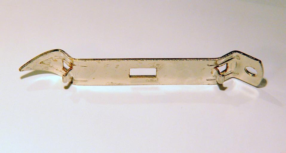 Keywords: Combination can bottle opener.jpg en Combination bottle opener and can puncher church key Chrome-plated steel 4 25 inch 108 mm long de Flaschenöffner it Apritappi eo botelo malfermilo own Caltrop 2009-10-11 Can openers Bottle openers