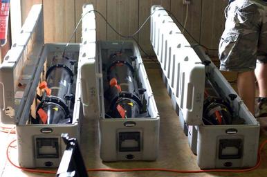 Keywords: Combined Joint Task Force-Horn of Africa, the government of Uganda conduct search and recovery operation DVIDS161755.jpg en Three of several torpedo-shaped sonar units being used in search and recovery efforts on Africa's Lake Victoria are connected to a computer Sonar of several types is being employed by members of U S Navy Explosive Ordnance Disposal Mobile Unit 11 forward-deployed from Camp Lemonier Djibouti on Africa's Lake Victoria to map the debris field of a crashed Ilyushin 76 transport plane EODMU-8's sonar technicians are part of a search and recovery operation being conducted by the Combined Joint Task Force-Horn of Africa and the government of Uganda <br>Unit Navy Media Content Services 2009-03-24 Chief Petty Officer Cory Drake https //www dvidshub net/image/161755/combined-joint-task-force-horn-africa-government-uganda-conduct-search-and-recovery-operation 090324-N-+++++-070 2009-04-01 01 28 ENTEBBE UG PD-USGov-Military-Navy Combined Joint Task Force - Horn of Africa United States Navy Explosive Ordnance Disposal Camp Lemonnier Images from DoD uploaded by Fæ |