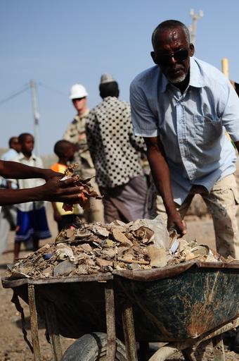 Keywords: Combined Joint Task Force - Horn of Africa Participates in 'Green Day' DVIDS194345.jpg en A local Djiboutian man pushes a wheel barrow in an effort to remove trash from the city of Ali Sabieh Djibouti Service members from Combined Joint Task Force-Horn of Africa joined Djiboutian residents to participate in a citywide cleanup project Aug 9 2009-08-09 Petty Officer 2nd Class Kelly Ontiveros https //www dvidshub net/image/194345 090809-N-+++++-350 2009-08-12 08 17 ALI SABIEH DJ PD-USGov-Military-Navy Combined Joint Task Force - Horn of Africa Images from DoD uploaded by Fæ |