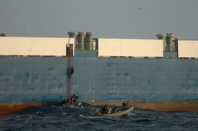 | Keywords: Combined Task Force 151 - 090206-N-3931M-015.jpg en 090206-N-3931M-015 SOMALIA Feb 6 2009 “ Sailors from the Norfolk-based destroyer USS Mason DDG-87 climb aboard Motor Vessel Faina to conduct a health and comfort inspection of the crew as well as provide them with food water and medical support Somali pirates released the Motor Vessel Faina Feb 5 after holding it for more than four months The U S Navy has remained within visual range of the ship and maintained a 24-hour 7-days a week presence since it was captured The Belize-flagged cargo ship is owned and operated by Kaalbye Shipping Ukraine and is carrying a cargo of Ukrainian T-72 tanks and related equipment The ship was attacked on Sept 25 and forced to proceed to anchorage off the Somali Coast U S 5th Fleet conducts maritime security operations to promote stability and regional economic prosperity U S Navy photo by Mass Communication Specialist 1st Class Michael R McCormick/Released http //www news navy mil/view_single asp id 68588 Mass Communication Specialist 1st Class Michael R McCormick USN 2009-02-06 PD-USGov-Military-Navy Combined Task Force 151 Faina ship 1978 |