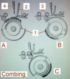 Keywords: Combing 1.jpg de Schema 3 Phasen des Kämmens cs Schema 3 faze cesani http //www archive org/stream/illustratedcatal00john page/n5/mode/2up Ryj 2012-10-13 Diese Bild- oder Mediendatei ist gemeinfrei weil ihre urheberrechtliche Schutzfrist abgelaufen ist Dies gilt für die Europäische Union Australien und alle weiteren Staaten mit einer gesetzlichen Schutzfrist von 70 Jahren nach dem Tod des Urhebers Zeichnung stammt aus einem Firmenkatalog von 1921 Autor unbekannt Combing machines |