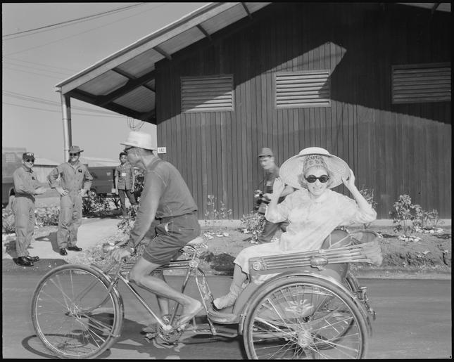 Keywords: Comedienne Phyllis Diller smiles for the camera as the Bob Hope Christmas show arrives at Korat Air Base, Thailand... - NARA - 542302.tif Scope and content General notes 542302 Local identifier 342-AF-101859USAF Department of Defense Department of the Air Force 09/26/1947 - Still Picture Records Section Special Media Archives Services Division NWCS-S National Archives at College Park 8601 Adelphi Road College Park MD 20740-6001 12/1966 Record group Record Group 342 Records of U S Air Force Commands Activities and Organizations 1900 - 2003 Record group ARC 654 Black and White Photographs of U S Air Force and Predecessors' Activities Facilities and Personnel Domestic and Foreign compiled 1930 - 1975 documenting the period 1863 - 1975 Series ARC 542185 File unit File unit ARC Variant control numbers NAIL Control Number NWDNS-342-AF-101859USAF yes Other versions <gallery>File Comedienne Phyllis Diller smiles for the camera as the Bob Hope Christmas show arrives at Korat Air Base Thailand - NARA - 542302 jpg Cropped JPG</gallery> NARA-cooperation PD-USGov Phyllis Diller Bob Hope and the USO People of the Vietnam War USAF mission at Korat RTAFB during the Vietnam War Christmas 1966 NARA TIF images with categorized JPGs |