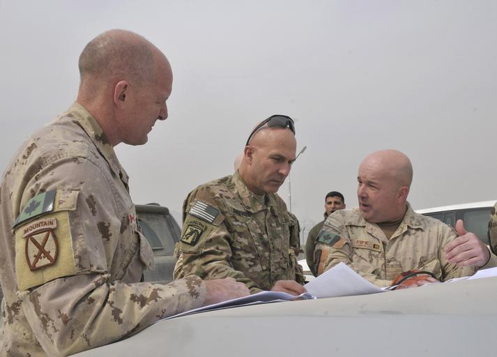 Keywords: Commander, ISAF Joint Command meets with Commander, NATO Training Mission-Afghanistan and senior Afghan commanders 140225-N-VZ328-088.jpg en Col John Fife commander of the Consolidated Fielding Center Training Advisory Group right speaks to Lt Gen Joseph Anderson commander of ISAF Joint Command center and Maj Gen Dean Milner commander of NATO Training Mission-Afghanistan left upon Anderson's arrival to the CFC on the outskirts of Kabul Anderson arrived to tour the base and meet with senior Afghan commanders U S Navy photo by Mass Communication Specialist 1st Class Kenneth G Takada/Released 2014-02-25 Petty Officer 1st Class Kenneth Takada https //www dvidshub net/image/1174333 140225-N-VZ328-088 2014-02-26 00 39 KABUL AF PD-USGov-Military-Navy NATO Training Mission - Afghanistan Images from DoD uploaded by Fæ |