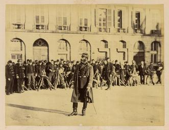 | Keywords: Commander of the Place Vendôme under the Commune WDL1268.png Artwork ru Б аквейе Б уно 1823 1875 гг fr Braquehais Bruno 1823-1875 en Braquehais Bruno 1823-1875 zh 布鲁诺·布拉奇海 ,1823-1875 年 pt Braquehais Bruno 1823-1875 ar براكهيه برونو، 1823-1875 es Braquehais Bruno 1823-1875 ru Командующий Вандомской площадью в пе иод Па ижской коммуны fr Commandant de la place Vendôme sous la Commune en Commander of the Place Vendôme under the Commune zh 巴黎公社 旺多姆广 的指挥官 pt Comandante da Praça Vendôme sob a comuna ar قائد ميدان فندوم أثناء ثورة الكومونة ru П ичиной ф анко-п усской войны стал ост нап яженности в отношениях между Ф анцией и П уссией в 1860-х гг Ф анция п и импе ато е аполеоне III была полна ешимости п ове ить астущую силу П уссии и отомстить за то что она ассмат ивала как яд дипломатических унижений П уссия п и канцле е Отто фон Бисма ке считала что война ге манских госуда ств п отив Ф анции под уководством П уссии станет ешающим шагом к созданию единой Ге манской импе ии Конфликт начался 19 июля 1870 г когда Ф анция объявила войну Ф анцузская а мия оказалась ужасно неподготовленной и поте пела сок ушительное по ажение в битве п и Седане отк ыв до огу на Па иж К 19 сентяб я немцкие войска полностью ок ужили го од и начали осаду кото ая п одлилась более четы ех месяцев От езанные от поставок п одовольствия из сельской местности па ижане пытались выжить питаясь собаками кошками и даже животными из па ижского зоопа ка Де евья на Елисейских полях и в па ках были вы ублены и использованы в качестве топлива 5 янва я немецкие войска начали бомба ди овку го ода кото ая п одолжалась по несколько часов каждую ночь в течение 23 суток а ок естности Па ижа было сб ошено около 12 000 сна ядов кото ые убили около 400 человек Па иж сдался 28 янва я в сущности положив конец войне За по ажением ф анцузов последовало на одное восстание и установление в а те 1871г Па ижской коммуны еволюционного п авительства сфо ми ованного в соответствии с ана хистскими и социалистическими п инципами Коммуна была жестоко подавлена в мае 1871 г ф анцузскими войсками п авительства Адольфа Тье а Во в емя неп одолжительного конт оля над Па ижем коммуна ы аз ушали импе ато скую колонну на Вандомской площади Подавление коммуны п ивело к дальнейшим значительным аз ушениям в го оде когда коммуна ы подожгли дво ец Тюиль и Лув и д угие здания К оме того многие здания пост адали или были аз ушены во в емя отчаянной пе ест елки между коммуна ами и конт еволюционными силами Siege de Paris 1870 1871 Осада Па ижа 1870 1871 гг п едставляет собой альбом из 110 фотог афий сделанных Огюстом Б уно Б аквейе 1823 1875 гг ф анцузским фотог афом и п ог ессивным фотожу налистом документи овавшим осаду и последствия бомба ди овок а также аз ушения п оизошедшие во в емя Па ижской коммуны <br>Ф анко-п усская война 1870 1871 гг ; Гене алы; Память ми а; Офице ы; Вандомская площадь Па иж Ф анция ; Площади; Солдаты fr La guerre franco-allemande fut provoquée par l escalade des tensions entre la France et la Prusse dans les années 1860 La France sous l empereur Napoléon III était déterminée à contenir la croissance de la puissance prussienne et à venger ce qui était considéré comme une série d humiliations diplomatiques La Prusse sous le chancelier Otto von Bismarck considérait qu une guerre dirigée par la Prusse et menée par les États allemands contre la France serait un acte décisif menant à la création d un empire allemand unifié Le conflit débuta le 19 juillet 1870 jour où la France déclara la guerre L armée française s avéra terriblement mal préparée et subit une défaite désastreuse lors de la bataille de Sedan laissant la voie libre vers Paris Le 19 septembre les Allemands encerclèrent complètement la ville et commencèrent un siège qui allait durer plus de quatre mois Coupés du ravitaillement provenant de la campagne les Parisiens survécurent en mangeant les chiens les chats et même la plupart des animaux du zoo de Paris Les arbres des Champs-Élysées et des parcs furent coup