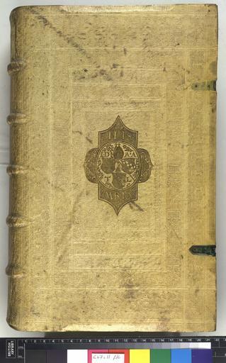 Keywords: Commentarius - Upper cover (c67i11).jpg Style Armorial Centrepiece Panel design Religious miscellaneous Religious IHS initials; Caption Upper cover; Colour White / cream; Edge Unspecified exhibition history Decorative Technique Tooled in blind Tooled in alloy frequently gold and silver zwischen gold ; Cover Material Pigskin alum tawed may be tooled in gold or oxidised silver 2 pairs of clasps Features Abbot's hat and initials I D AA TL and 3 coats of arms object history Text 1604; Unspecified; Unspecified object type Cc-zero place of creation Binding Germany place of discovery Unspecified British Library image http //www bl uk/catalogues/bookbindings/LargeImage aspx RecordId 020-000008802 ImageId ImageId 44006 Copyright BL Commentarius Uploaded with GWToolset Commentarius - Upper cover c67i11 http //www webarchive org uk/bldatasets/bindings/9466_4 jpg Bookbinding 17th-century bookbinding British Library Bookbindings |