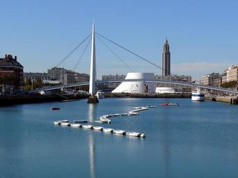 Keywords: commercial port city architecture oscar niemeyer cargo ship building facade pierre cathedral urban landscape france