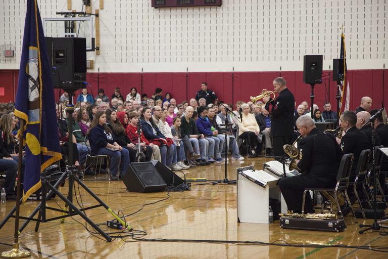 Keywords: band commodores navy navy band navyband tour 2015 concert band music 151101-N-HA868-027 LAKE GENEVA WISC. (November 01, 2015) Musician 1st Class Nick Cooper, of Phoenix, Ariz., performs a solo at a Commodores concert at Lake Geneva High School in Lake Geneva, Wisc. The Commodores are currently on an 18-day concert tour of Maryland, Pennsylvania, Ohio, Indiana, Illinois, Wisconsin, and Iowa. (U.S. Navy Photo by Master Chief Musician Aaron Porter/Released) 151101-N-HA868-027 LAKE GENEVA WISC. (November 01, 2015) Musician 1st Class Nick Cooper, of Phoenix, Ariz., performs a solo at a Commodores concert at Lake Geneva High School in Lake Geneva, Wisc. The Commodores are currently on an 18-day concert tour of Maryland, Pennsylvania, Ohio, Indiana, Illinois, Wisconsin, and Iowa. (U.S. Navy Photo by Master Chief Musician Aaron Porter/Released) |