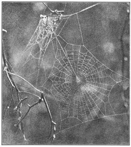 Keywords: Common Spiders U.S. 400 Araneus marmoreus web.jpg en Web of young Epeira insularis showing the nest above and the straight thread leading from the nest to the center of the web Half the real size 1902 The Common Spiders of the United States Ginn Company Boston 1902 James Henry Emerton 1847 “ 1931 other versions PD-old-70-1923 The Common Spiders of the United States Uploaded with UploadWizard Araneus marmoreus |