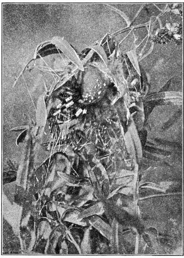 Keywords: Common Spiders U.S. 402 Araneus trifolium.jpg en Epeira trifolium in its nest in a plant of golden-rod Natural size 1902 The Common Spiders of the United States Ginn Company Boston 1902 James Henry Emerton 1847 “ 1931 other versions PD-old-70-1923 The Common Spiders of the United States Uploaded with UploadWizard Araneus trifolium |
