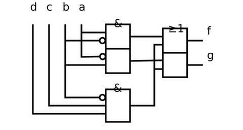 Keywords: Common term multifunction.svg en Common term of a multifunction combinational circuit es Término común de un circuito combinacional multifunción own Dizquierdol 2011-01-19 Las funciones f y g tienen en común el término <span style text-decoration overline >b</span>cd <br /> Simbología IEC Realizado con Dia 0 96 e Inkscape 0 48 Cc-zero Digital circuit diagrams