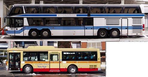 Keywords: Comparison of omnibus and MegaLiner.jpg Comparison of omnibus and MegaLiner Neoplan Megaliner N128/4 and Mitsubishi PKG-AA274KAN ネオプラン・メガライナーと路線バス車両(三菱エアロスター-S)の比較 Photo by Cassiopeia_sweet 2005 06 24 and 2007 02 04 Cassiopeia_sweet Neoplan Megaliner Neoplan buses in Japan Buses in Japan photographed in 2005 Coaches in Japan Double-decker buses in Japan Full-size buses in Japan Kanto Railway Bus Quad-axle buses in Japan Fuso Aero Star-S Fuso buses in Japan Buses in Japan photographed in 2007 Kanagawa Chuo Kotsu Midibuses in Japan |